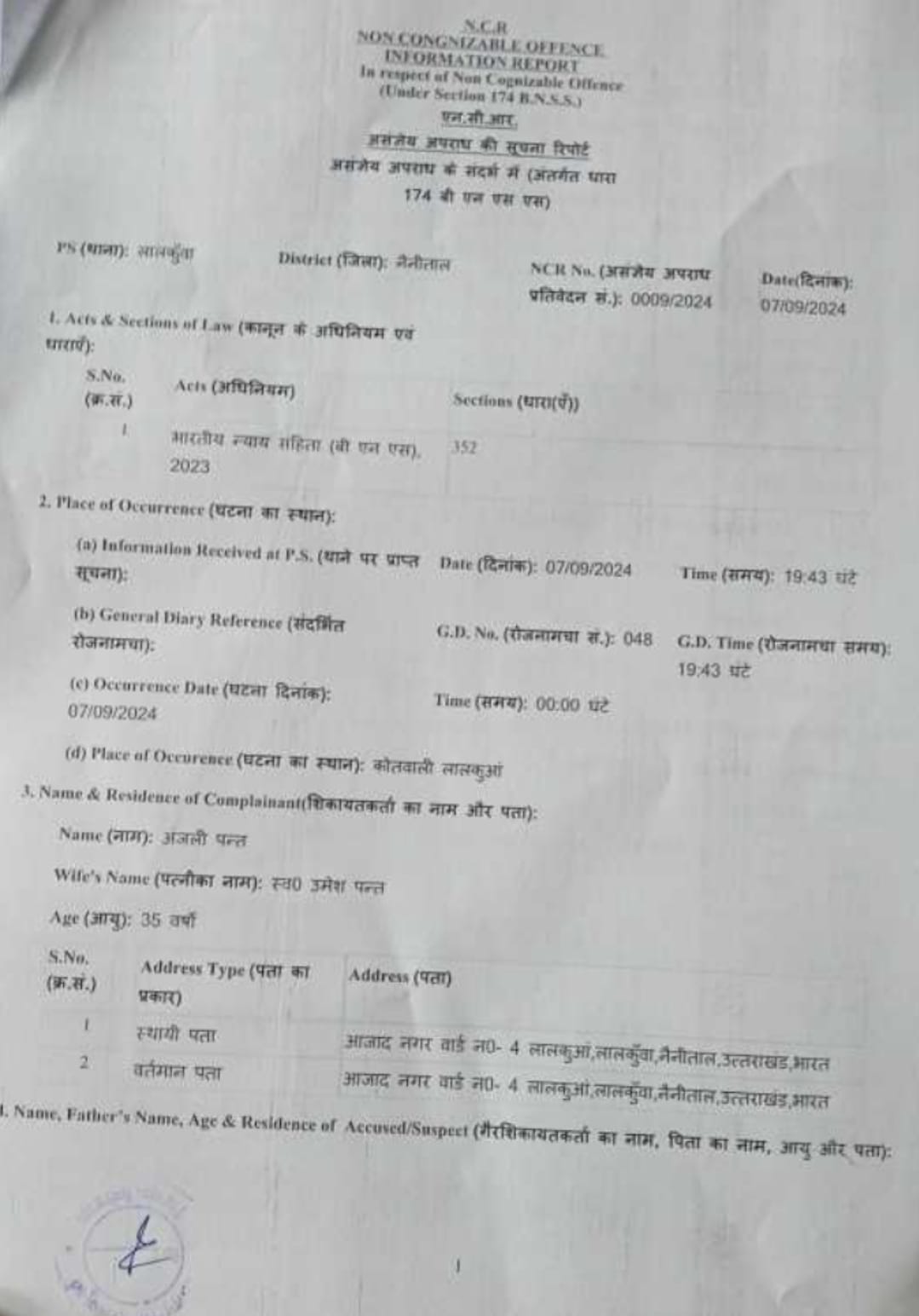 इस घटना से अंजली पंत बेहद आहत हुईं और उन्होंने इसे मानसिक उत्पीड़न का मामला बताया।अंजली पंत ने घटना के तुरंत बाद कोतवाली लालकुआं में एफ.आई.आर. दर्ज कराने की तहरीर दी। उन्होंने हिमांशु जोशी, रमेश जोशी और उनके अन्य अज्ञात साथियों के खिलाफ कानूनी कार्रवाई की मांग की है, ताकि भविष्य में ऐसी घटनाओं की पुनरावृत्ति न हो। इस मामले में पुलिस ने महिला पत्रकार अंजलि की तहरीर पर मुकदमा पंजीकृत कर लिया है।