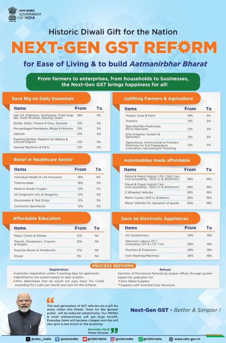 सभी संशोधित दरें 22 सितम्बर 2025 से पूरे देश में लागू हो जाएंगी।