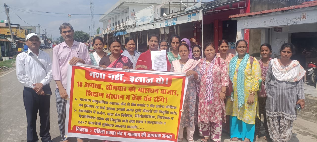 महिलाओं ने मालधन नंबर 1 और 2 में जुलूस निकालकर लोगों से बंद को सफल बनाने की अपील की। यह आंदोलन मुख्य रूप से सामुदायिक स्वास्थ्य केंद्र से फिजीशियन डॉ. प्रशांत कौशिक और स्त्री रोग विशेषज्ञ डॉ. अर्चना कौशिक के ट्रांसफर रद्द करने, अस्पताल में मानकों के अनुरूप चिकित्सकों की नियुक्ति, तथा एक्स-रे, अल्ट्रासाउंड, रेडियोलॉजिस्ट, प्रसव, निश्चेतक और आपातकालीन सेवाओं जैसी सुविधाएं उपलब्ध कराने की मांग को लेकर चलाया जा रहा है।