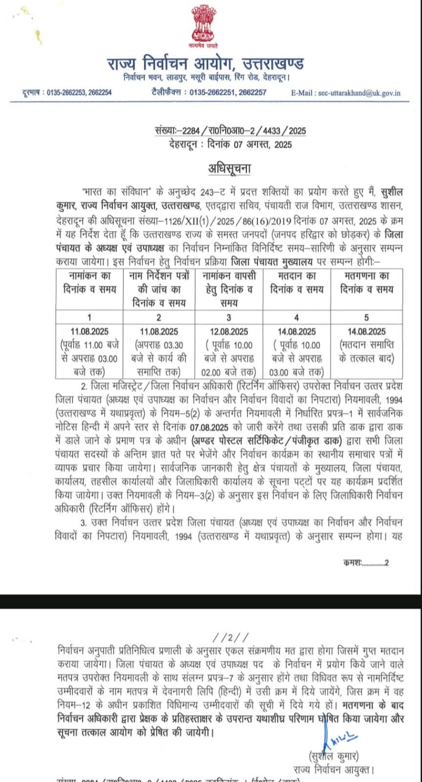 उत्तराखंड पंचायत चुनाव: जिला पंचायत अध्यक्ष व ब्लॉक प्रमुख पदों के लिए अधिसूचना जारी, 14 अगस्त को मतदान