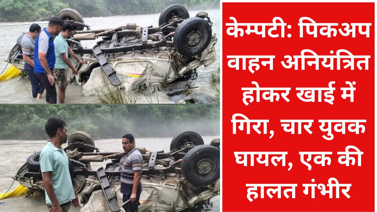 केम्पटी: पिकअप वाहन अनियंत्रित होकर खाई में गिरा, चार युवक घायल, एक की हालत गंभीर