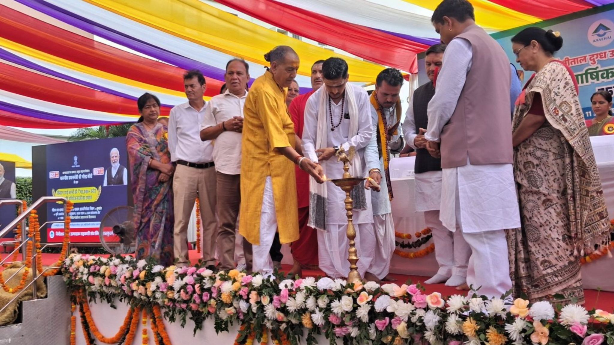 कार्यक्रम का शुभारंभ महापौर गजराज सिंह बिष्ट, जिला पंचायत अध्यक्ष दीपा धरमवाल, दर्जा राज्य मंत्री सुरेश भट्ट, भाजपा प्रदेश महामंत्री तरुण बंसल, और दुग्ध संघ अध्यक्ष मुकेश बोरा ने संयुक्त रूप से दीप प्रज्वलन कर किया।