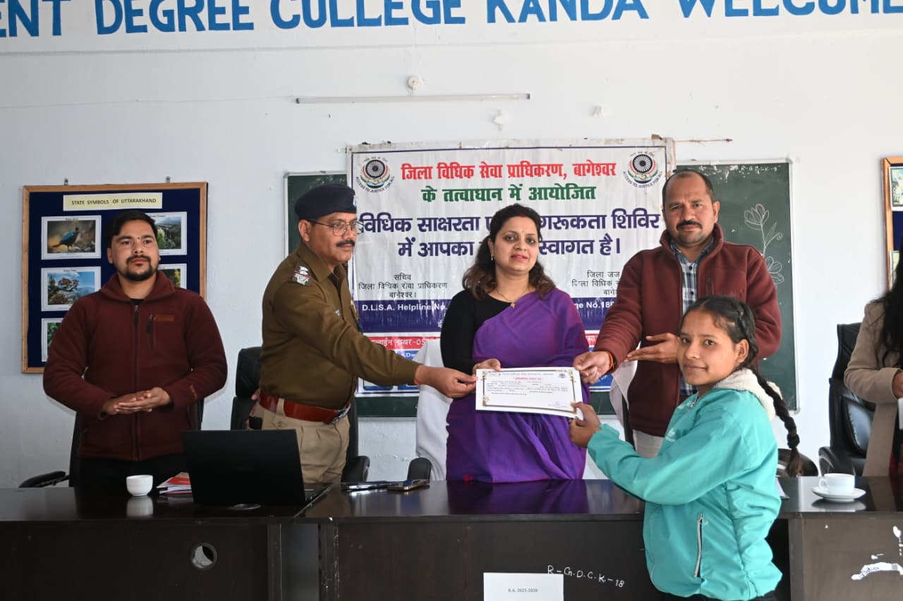 बागेश्वर। मा० राज्य विधिक सेवा प्राधिकरण, नैनीताल द्वारा जारी फरवरी 2026 के प्लान ऑफ एक्शन के तहत जिला विधिक सेवा प्राधिकरणों को 11 फरवरी 2026 को ‘विज्ञान में महिलाओं और लड़कियों का अंतरराष्ट्रीय दिवस’ के अवसर पर विधिक जागरूकता शिविर आयोजित करने के निर्देश दिए गए थे। इसी क्रम में जिला विधिक सेवा प्राधिकरण, बागेश्वर द्वारा डिग्री कॉलेज कांडा में छात्र-छात्राओं के मध्य विधिक जागरूकता शिविर का आयोजन किया गया।
