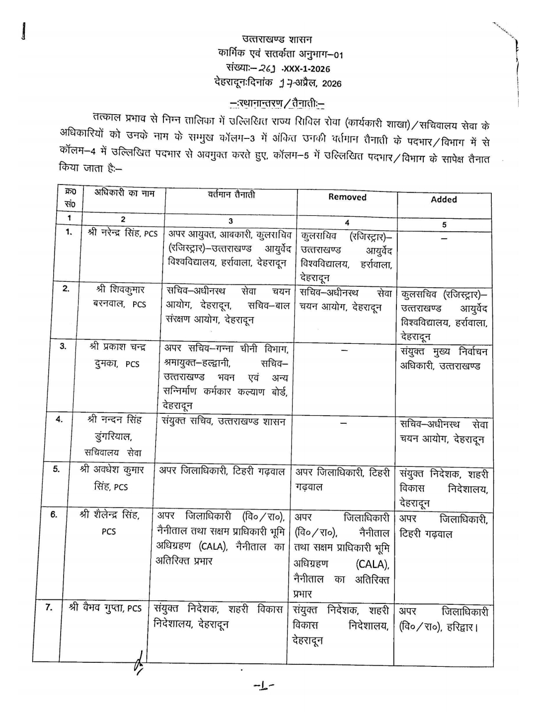 उत्तराखंड में बड़ा प्रशासनिक फेरबदल, IAS और PCS अधिकारियों के तबादले