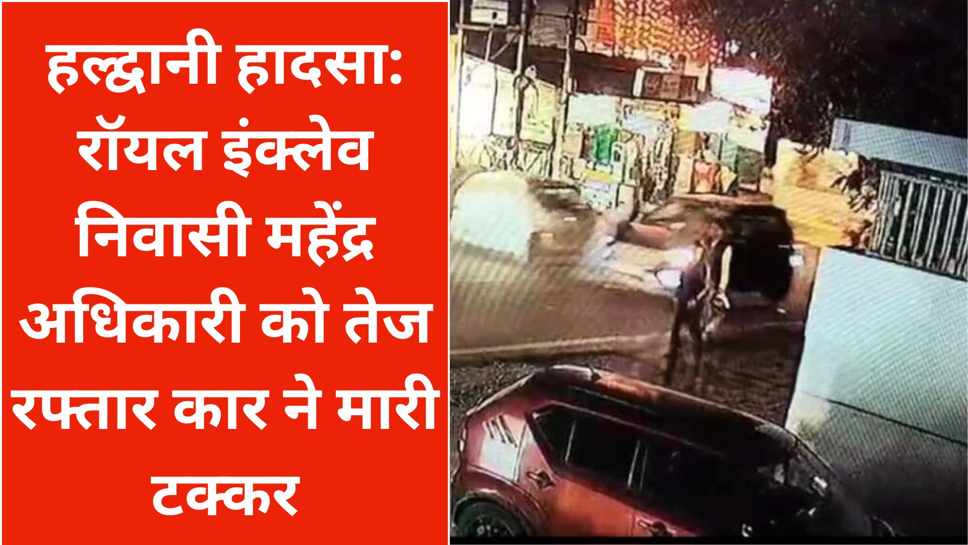 सूत्रों के अनुसार, महेंद्र अधिकारी रविवार शाम एक निजी शॉपिंग कॉम्प्लेक्स से सामान लेकर सड़क पार कर रहे थे, तभी UK18L5757 नंबर की तेज रफ्तार कार (Car Accident in Haldwani) ने उन्हें जोरदार टक्कर मार दी। हादसे के बाद चालक मौके से फरार हो गया।