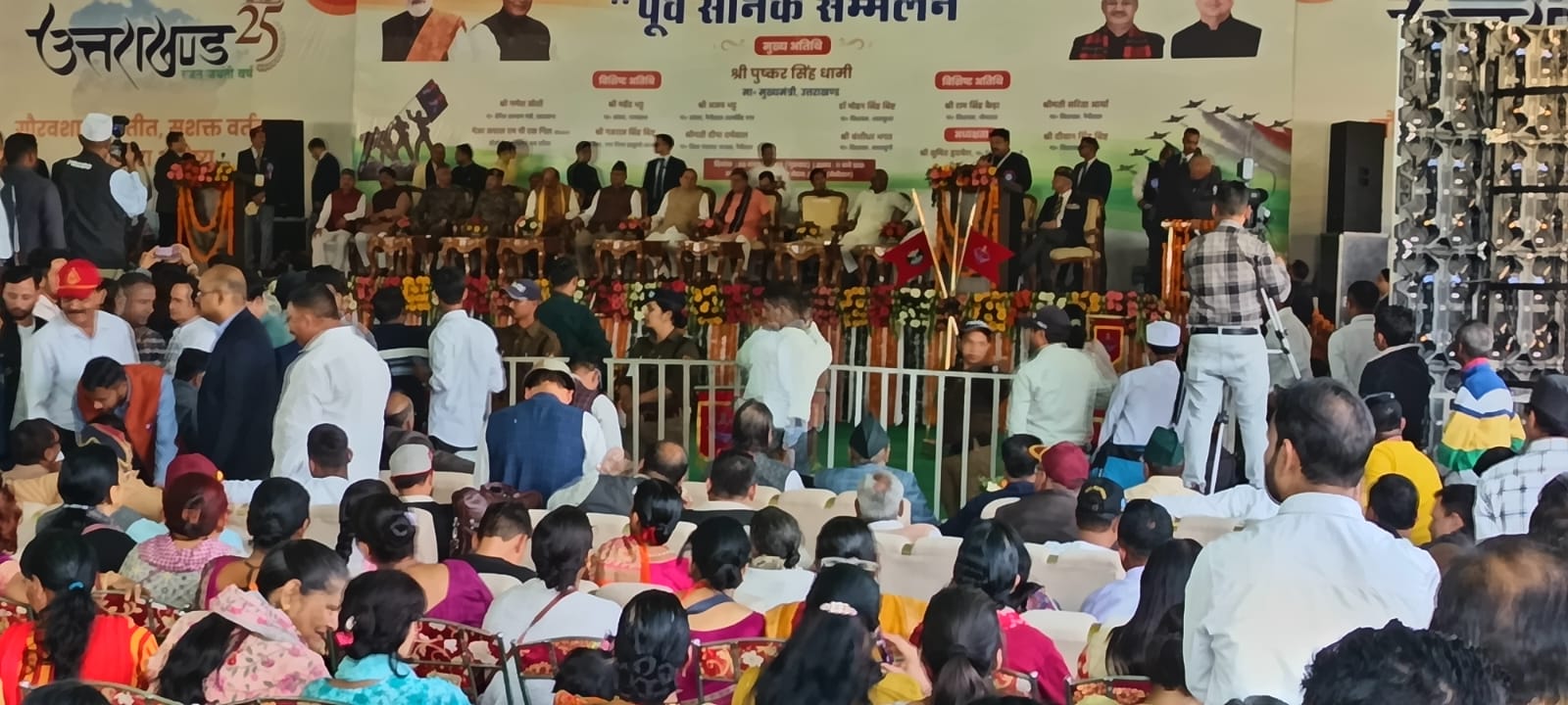 देहरादून, 6 नवम्बर 2025। उत्तराखंड रजत उत्सव-2025 के उपलक्ष्य में आयोजित पूर्व सैनिक सम्मेलन में आज वरिष्ठ नागरिक जन कल्याण समिति के पदाधिकारियों एवं सदस्यों ने प्रतिभाग किया। कार्यक्रम में मुख्य अतिथि के रूप में पधारे माननीय मुख्यमंत्री श्री पुष्कर सिंह धामी का समिति के सदस्यों ने पुष्पगुच्छ भेंट कर स्वागत किया।