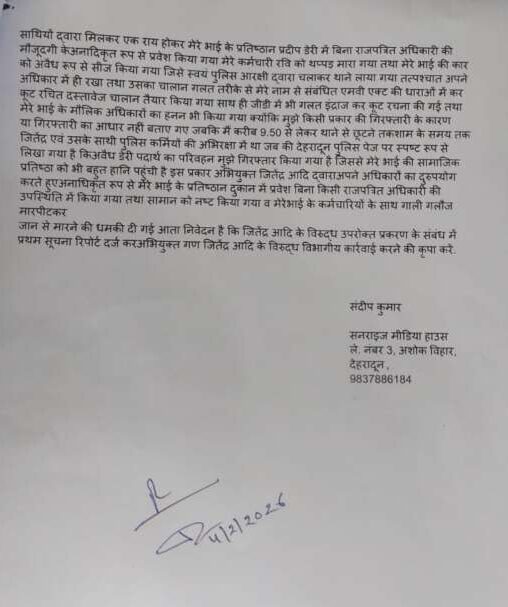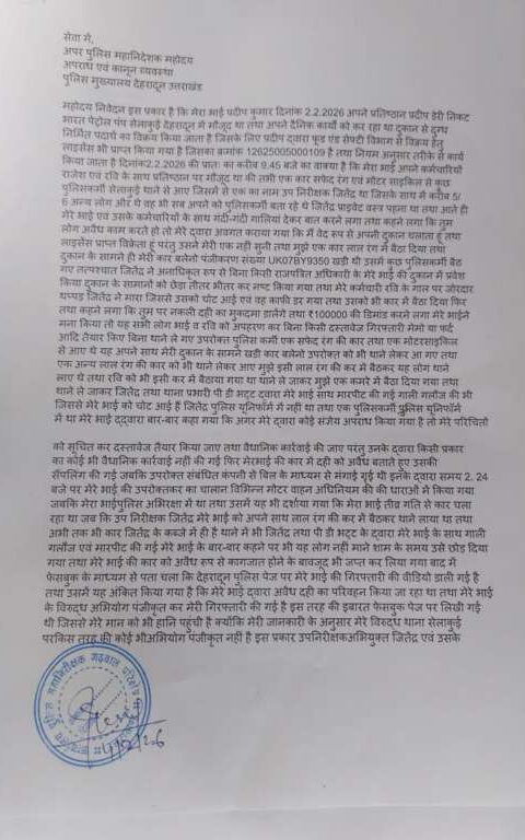 इस पूरे प्रकरण से आहत प्रदीप ने अब एडीजी लॉ एंड ऑर्डर को पत्र सौंपकर सेलाकुई थाने के पुलिसकर्मियों के खिलाफ शिकायत दर्ज कराई है।